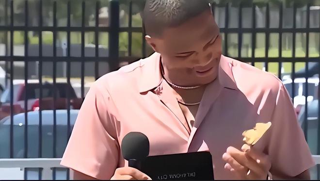 2015 年全明星賽拿了 MVP,贊助商送的起亞汽車還沒捂熱,威少就開去了郊區(qū):一位單親媽媽岡薩雷斯抱著兩個孩子哭到發(fā)抖,她沒忘威少曾說 “要送份禮物”,卻沒想到是能載著全家安穩(wěn)生活的一輛汽車。